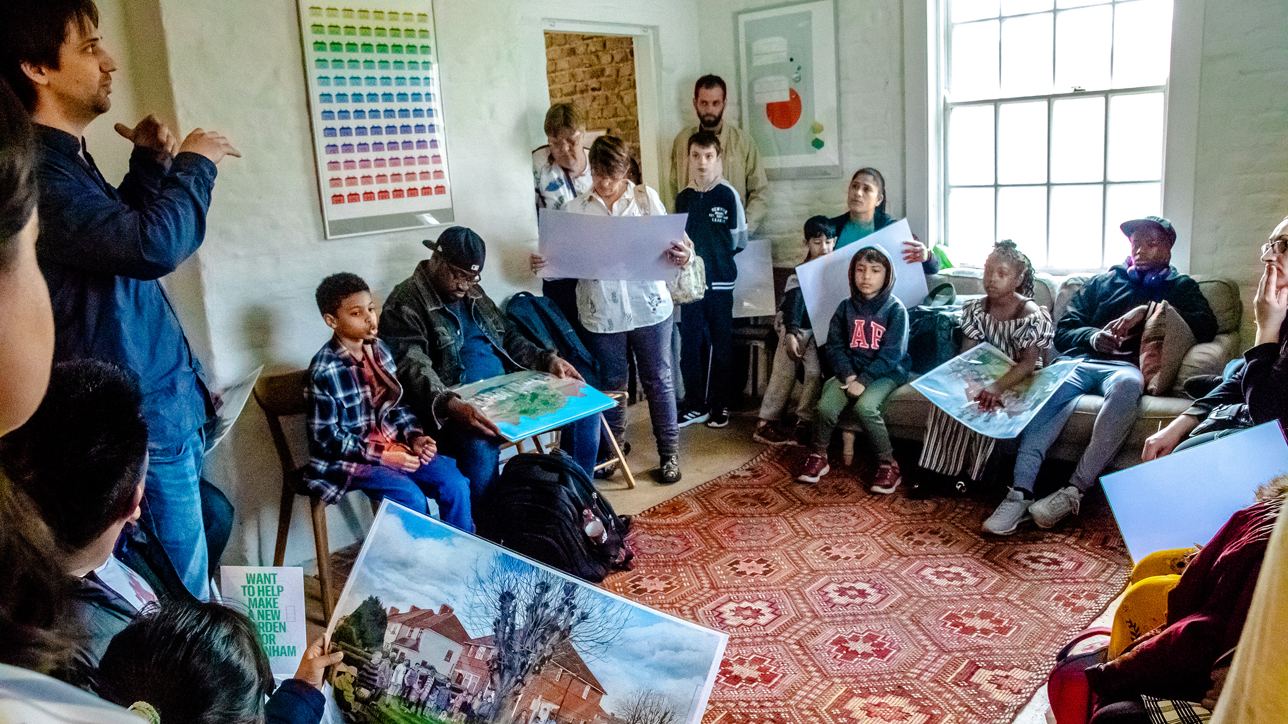 The outdoor paintings sessions were a way to get in contact with the residents of the former Becontree Estate. Through their own curiosity people got involved in the project. The medium of painting is a reference to the artists of the ‘arts and craft movement’ that helped to promote Ebenezer Howard’s idea of the Garden Cities at the beginning of the 20th century. These artists painted idyllic paintings (en plein air) of the British country side and of the first garden cities. These images became influential in the popularization of the new suburbs, where the best of the city would be combined with the best of the countryside. Garden Cities would liberate people from the overcrowded and polluted city centers. The Becontree Estate was not a new garden city, like letchworth and Welwyn, but many elements were copied, one of which was the focus on ecological structures, green corners, gardens, etc.