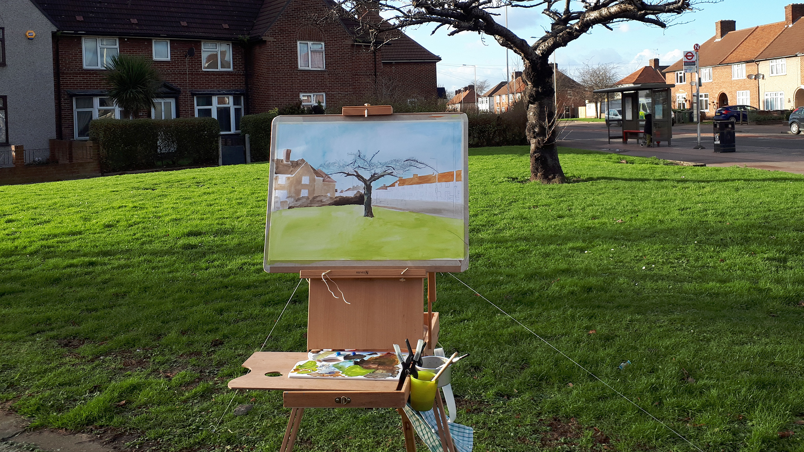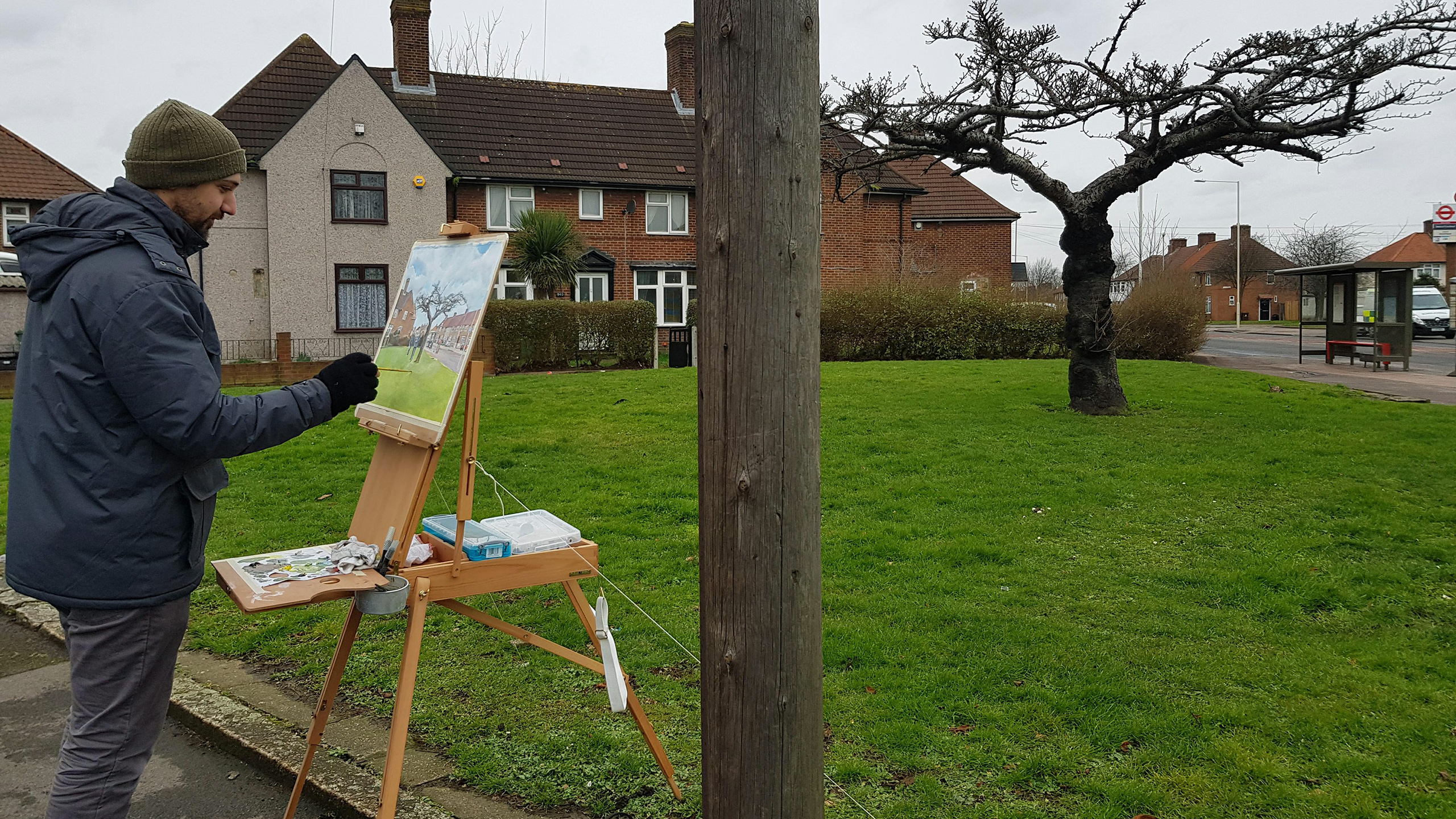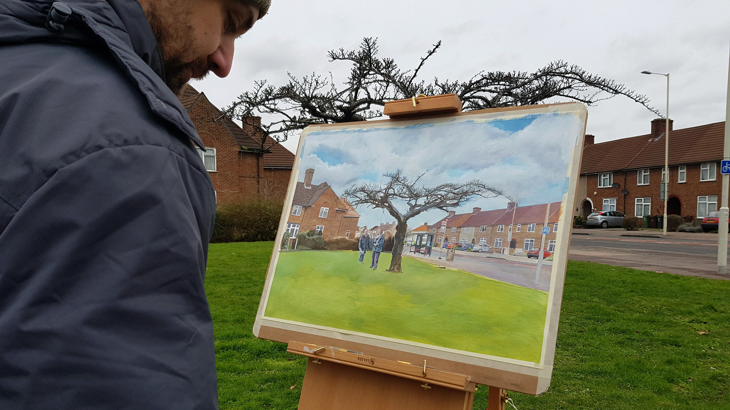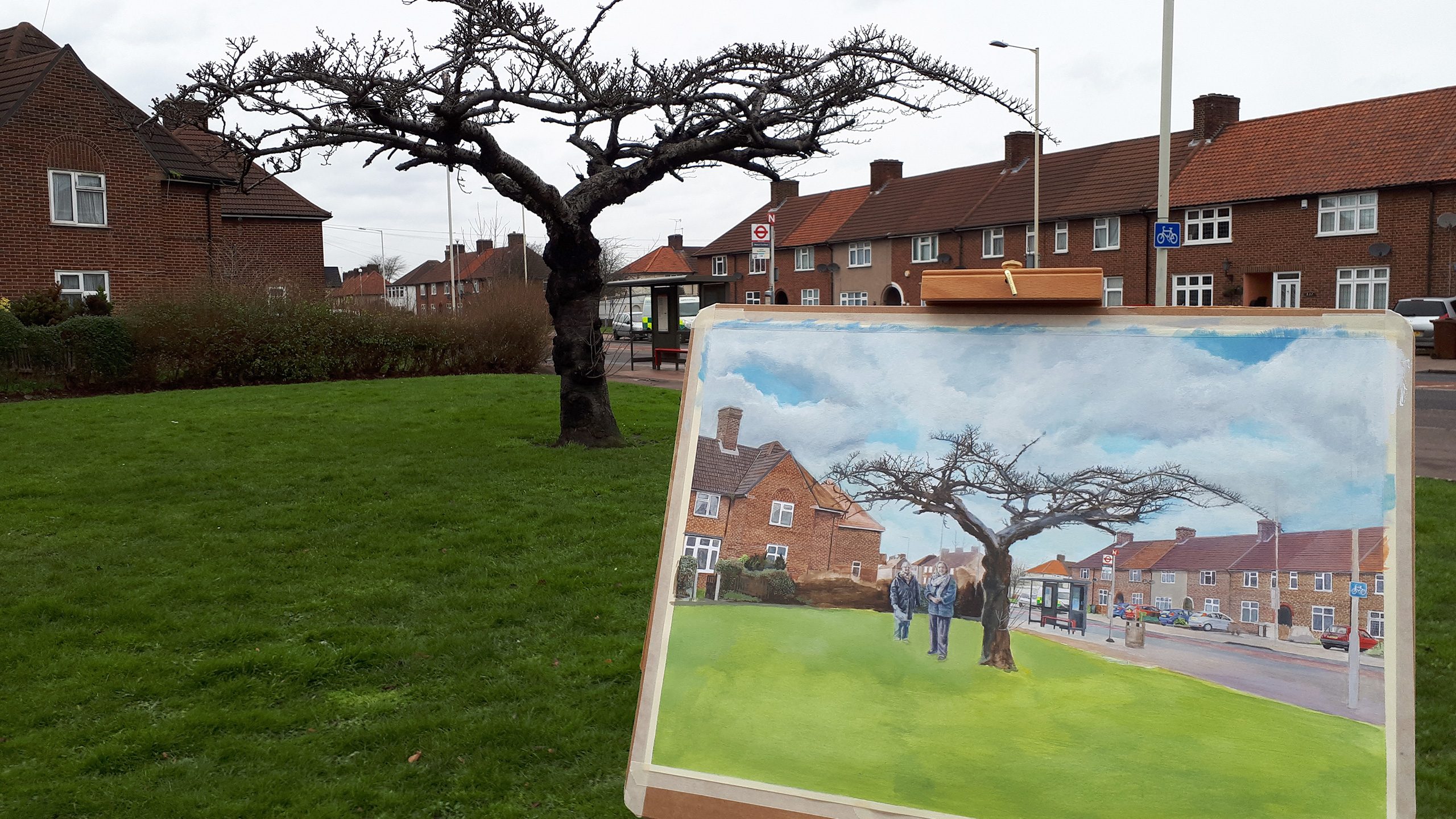 During the numerous painting sessions people didn’t ignore me, on the contrary. They would stop their cars in the middle of the road to see what I was painting. I had a young guy approach me while his car was left in the middle of the street, with a running engine and music still playing, others would just simply roll down their window to shout for how much I would sell the painting. Children would run towards me shouting “An artist, there is an artist!”. Or people would stand beside me silently, looking over my shoulder. Others would take selfies with me, post Instagram stories or offer me a cup of tea. I had a boy come up to me with a folder filled with his own drawings and an older lady who had gone back home to bring me a framed painting that her daughter had made before she had chosen not to become an artist and study medicine instead. I had a realtor approaching me if I could paint the houses he had sold or another person who asked if I could paint at his wedding ceremony. Everybody approached me for different reasons but they were all amazed to see somebody taking the time to paint their ‘forgotten’ neighbourhood. Why did I choose to paint in Dagenham, they asked. Why in a neighbourhood that isn’t particularly famous for its beautiful scenery?