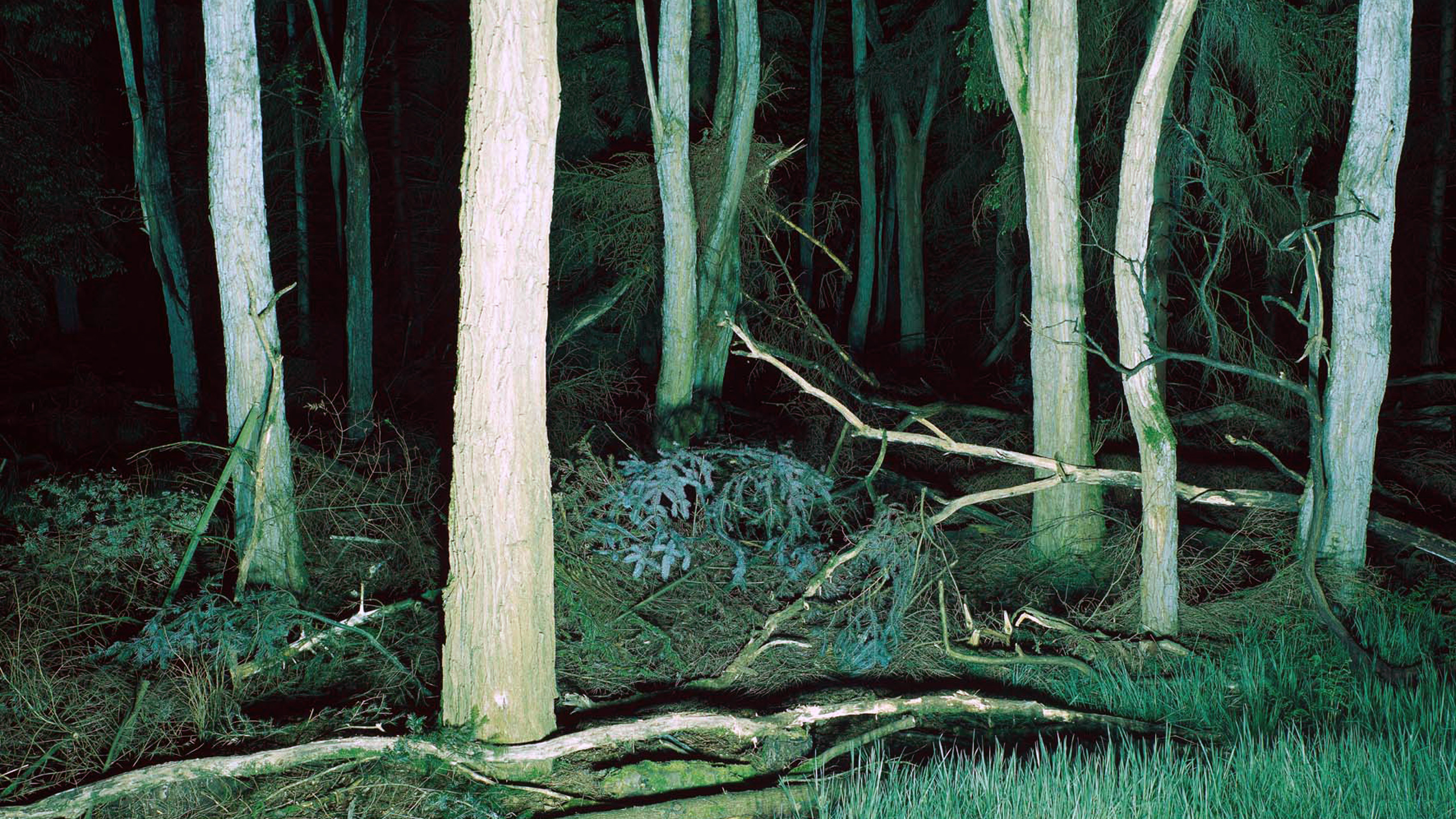 The photographic work examined the authenticity of Dutch forests. In The Netherlands almost all nature is constructed and designed. The series consisting of of multiple photographs turned into light boxes, exposing the exaggerate interference of the Dutch forestry. The effect of illuminating pieces of forest at night created a sublime appearance of the trees, branches and leaves; because of this the landscape itself seemed to become even more artificial and alienating. The compositions made in the forest at night were left behind, creating sculptural interventions in the forest.