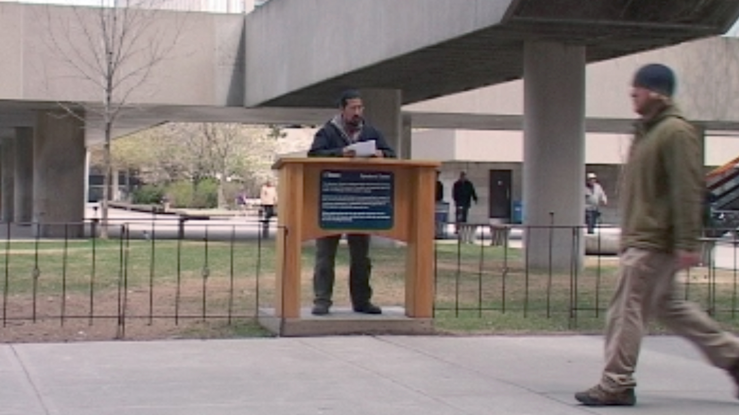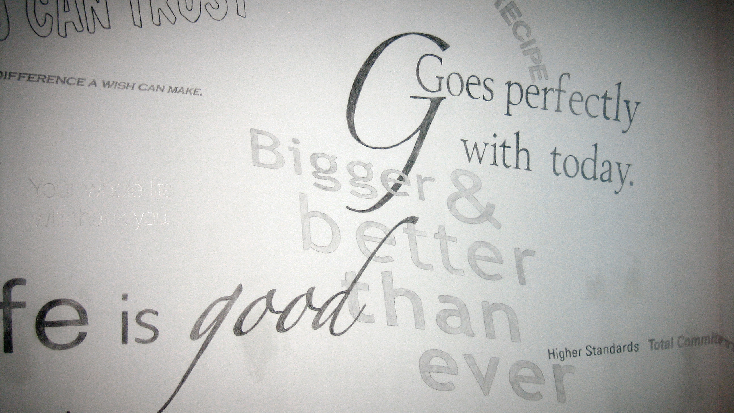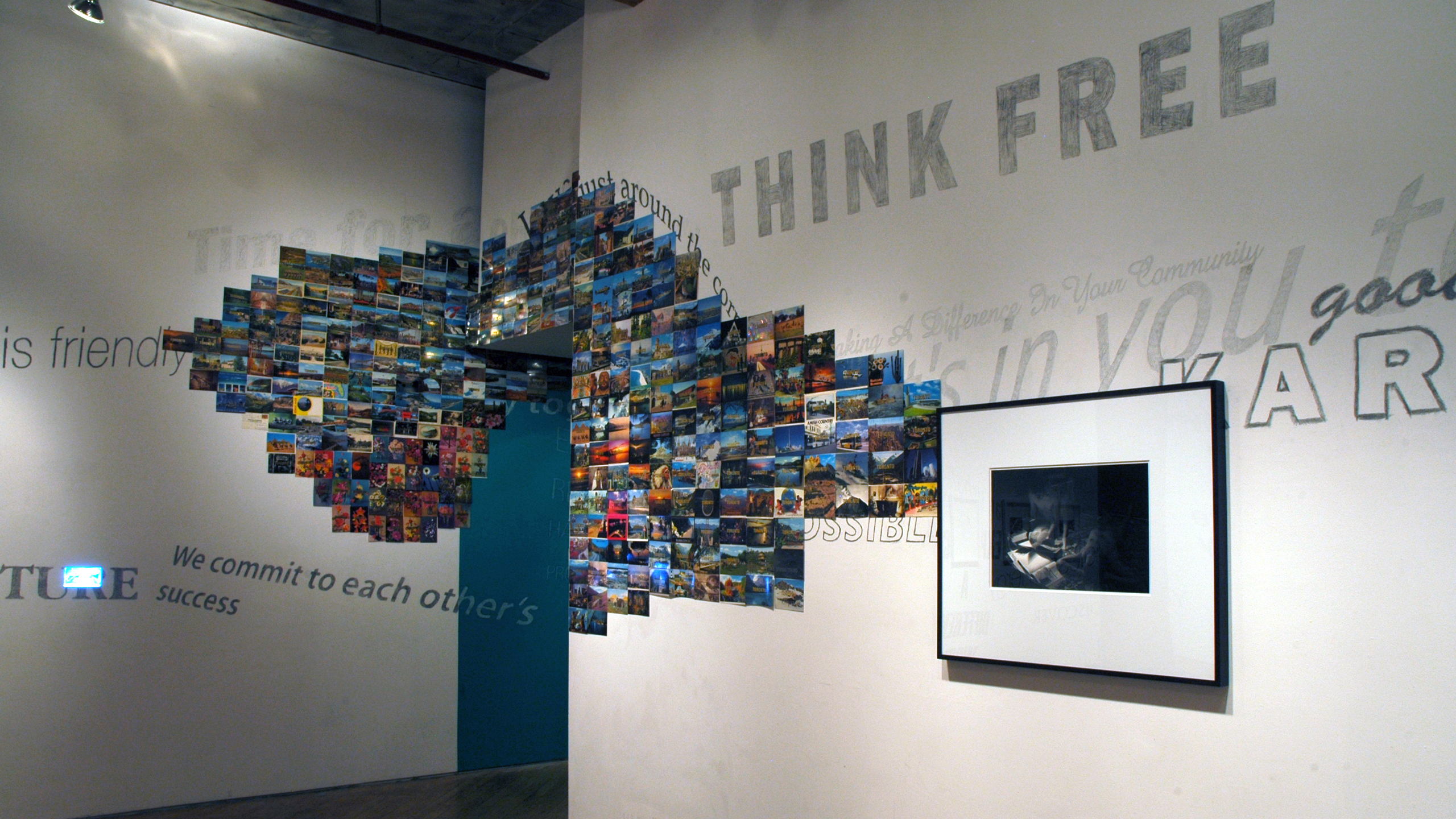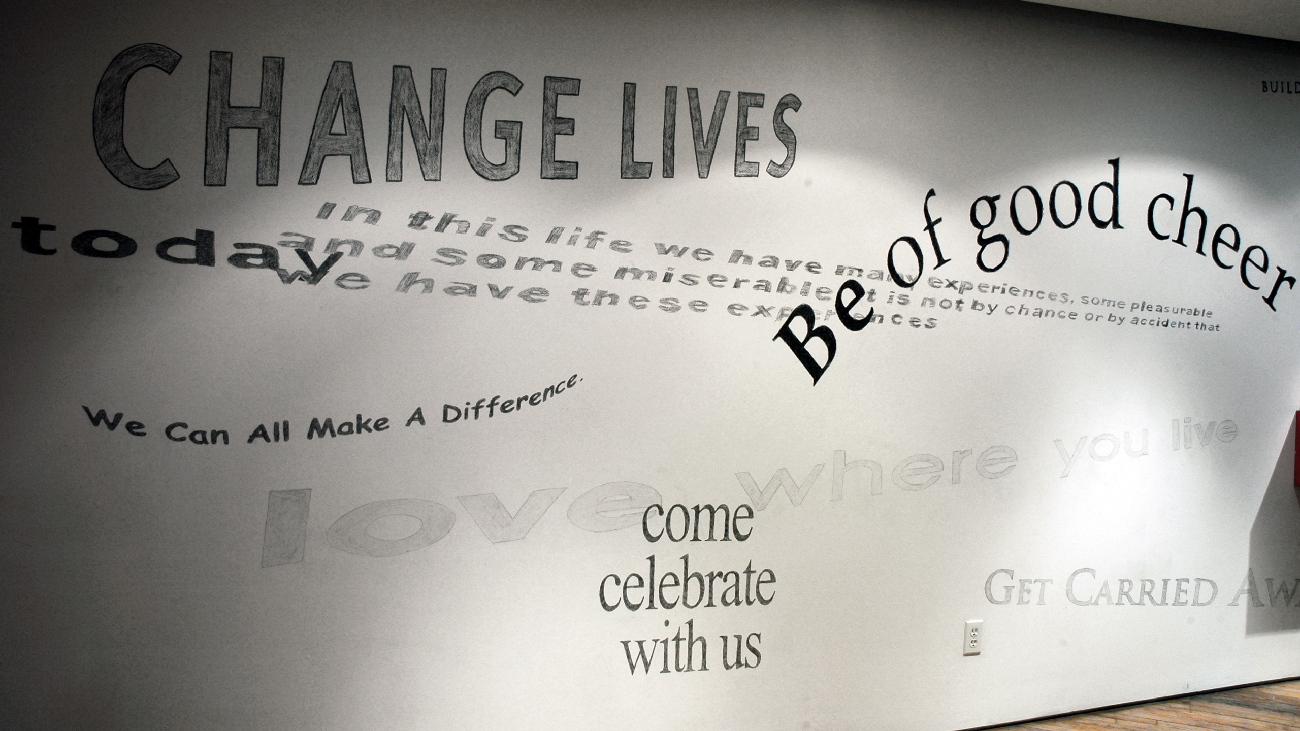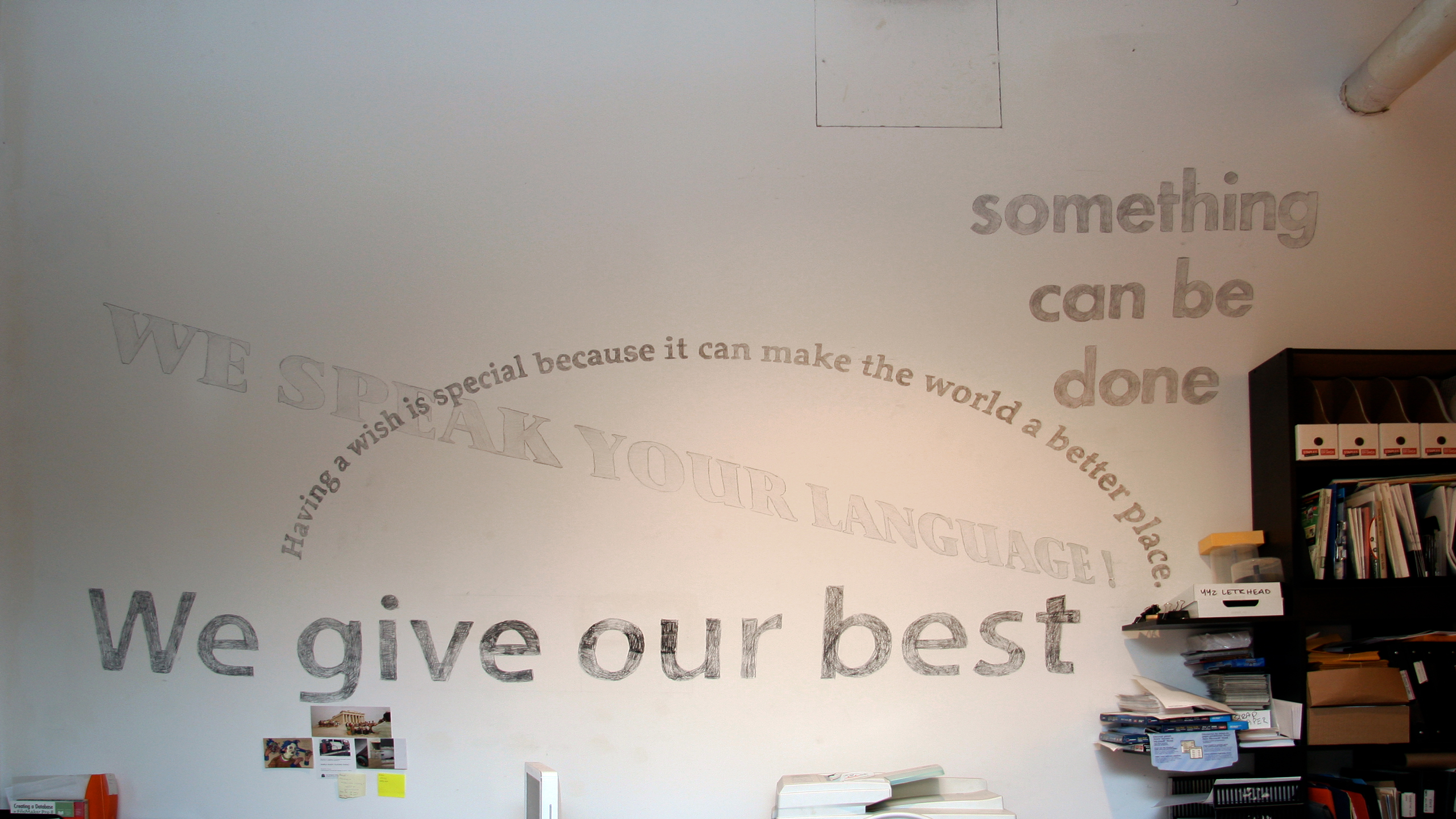 The video is shown during a group exhibition at YYZ Gallery in Toronto from 02.05.2008 – 14.06.2008. The collection of slogans were used to cover the walls of the gallery space. They formed the backdrop of the exhibition.
