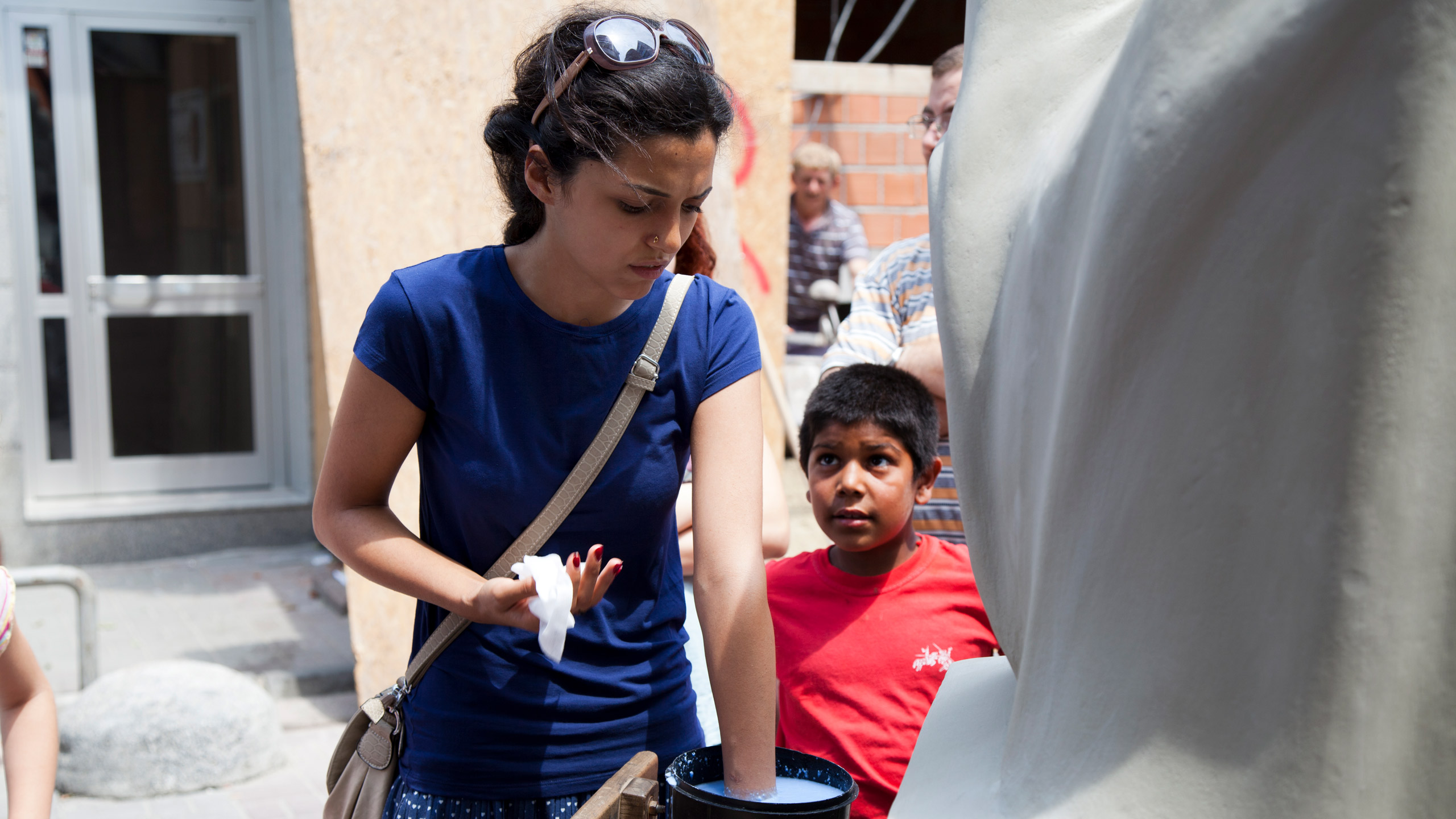 While wheeling the junk-cart through the city’s neighborhoods, people were asked to give a helping hand and contribute to the construction of a new monument by giving permission to make a plaster copy of one of their hands. Molds of volunteers’ hands were made on the spot, and the people were interviewed about their personal views of the construction and demolition of the monument. The plaster hands served as building blocks for the new Monument to Humanity in Kars