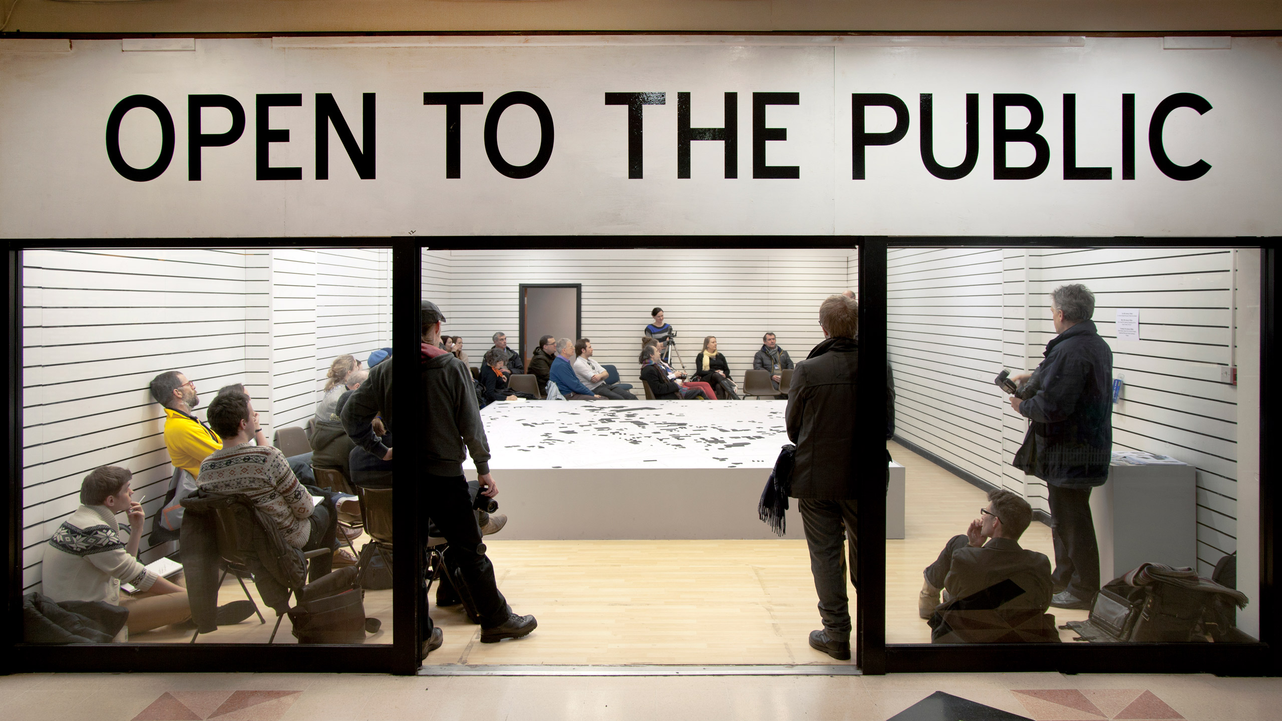 Open to the public was a research trajectory and a public platform for discussion about the meaning and potential of vacant buildings. The urban planning in Preston had been dominated over the last decade by a large-scale regeneration plan: a vast part of the inner city was to be transformed into a new shopping district. The economic crisis caused the main investor to pull out and as a consequence the whole plan failed. The platform ‘Open to the Public’ was a reaction to this situation of general perplexity and aimed for the development of different ideas concerning the future of the city. A map of empty buildings was shown in an empty shop in the main shopping area. From there debates were organized about alternative usage of the empty buildings. For the duration of the project, the vacant properties in the city were marked off with barrier tape to indicate the ‘crime’ of vacancy.