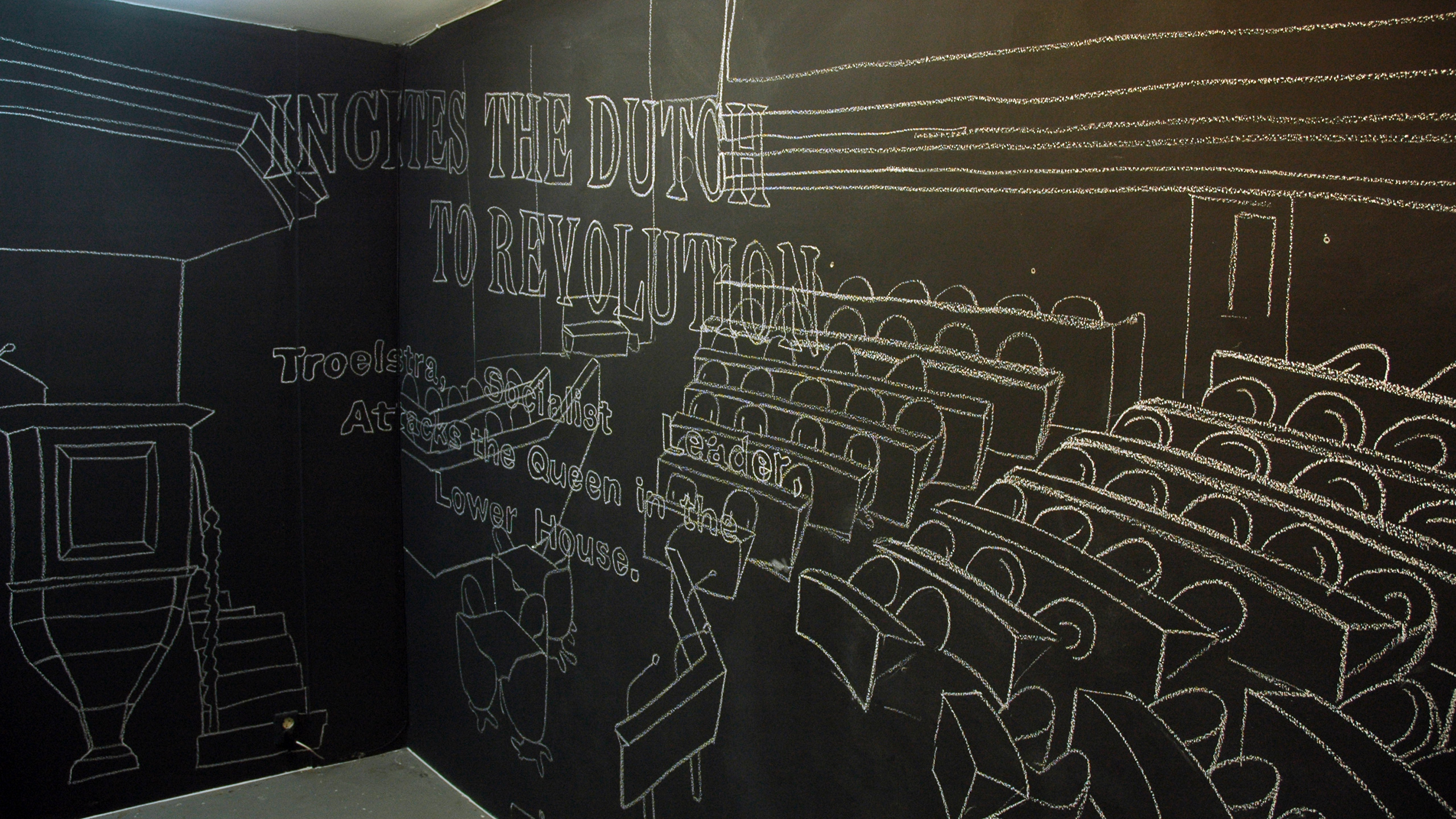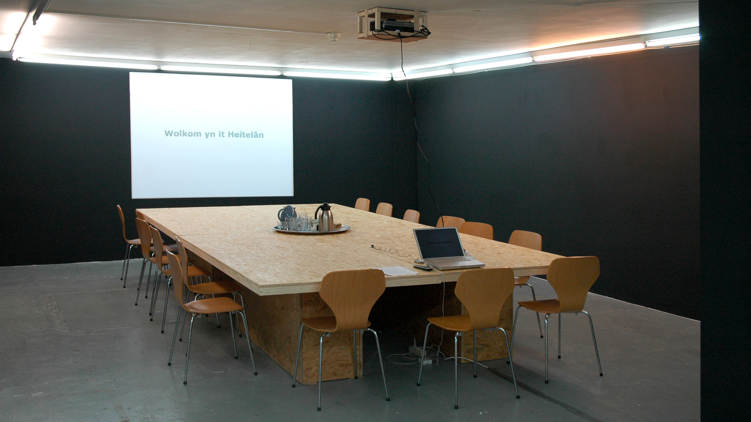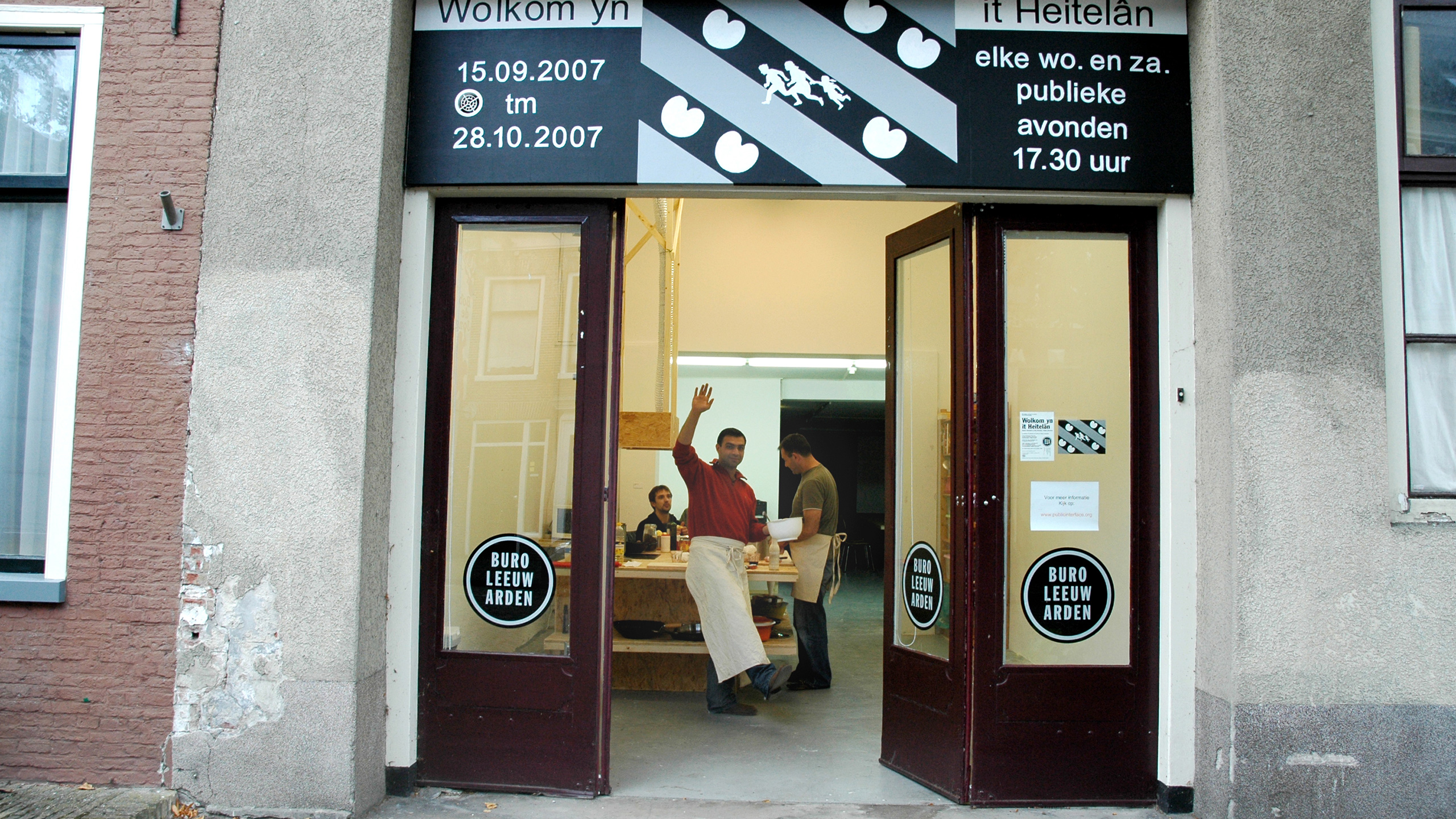 (Frisian for ‘Welcome to the Fatherland’) functioned as a think-tank, meeting place and artist-in-residency and aimed to reflect on the topics of cultural identity and migration within a local, Frisian, context. The public was invited to join one or more round table conversations on every Wednesday and Saturday evening throughout the 5 weeks of the project. Every 10 days a new artist worked on site to create work in response to the aforesaid topics. Guest speakers from different areas of expertise reflected on the issues presented by the project. They communicated their visions to the public by means of presentations, screenings, interviews and lectures. The artists Jonas Staal, Katarina Zdjelar, Misja Immink, Iratxe Jaio and Klaas van Gorkum were invited to respond to these topics. They developed their own proposals during the duration of the project.