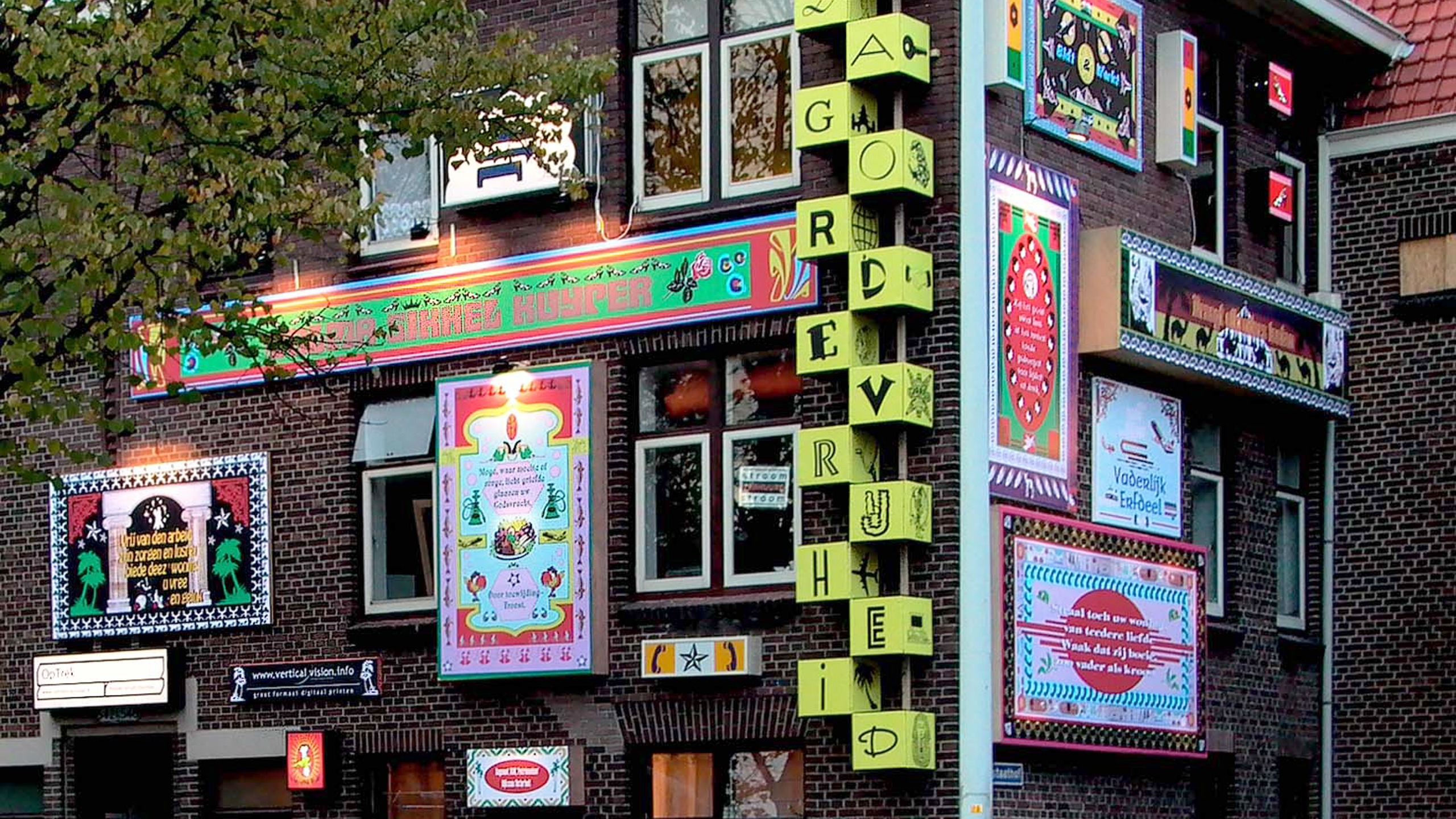 This site-specific installation focussed on a large-scale urban renewal project in The Hague. The outdoor installation was installed on the facade of a building destined to be demolished. It showed the contrast between the multicultural neighborhood and the traditional Dutch public housing, by combining traditional sayings, found as stone engravings within the old architecture, and the contemporary designs of advertisements in the nearby shopping street. We imagined this work as a temporary monument dedicated to the ideal of the multicultural society. We wanted to point out that the future urban renewal process should include all people.