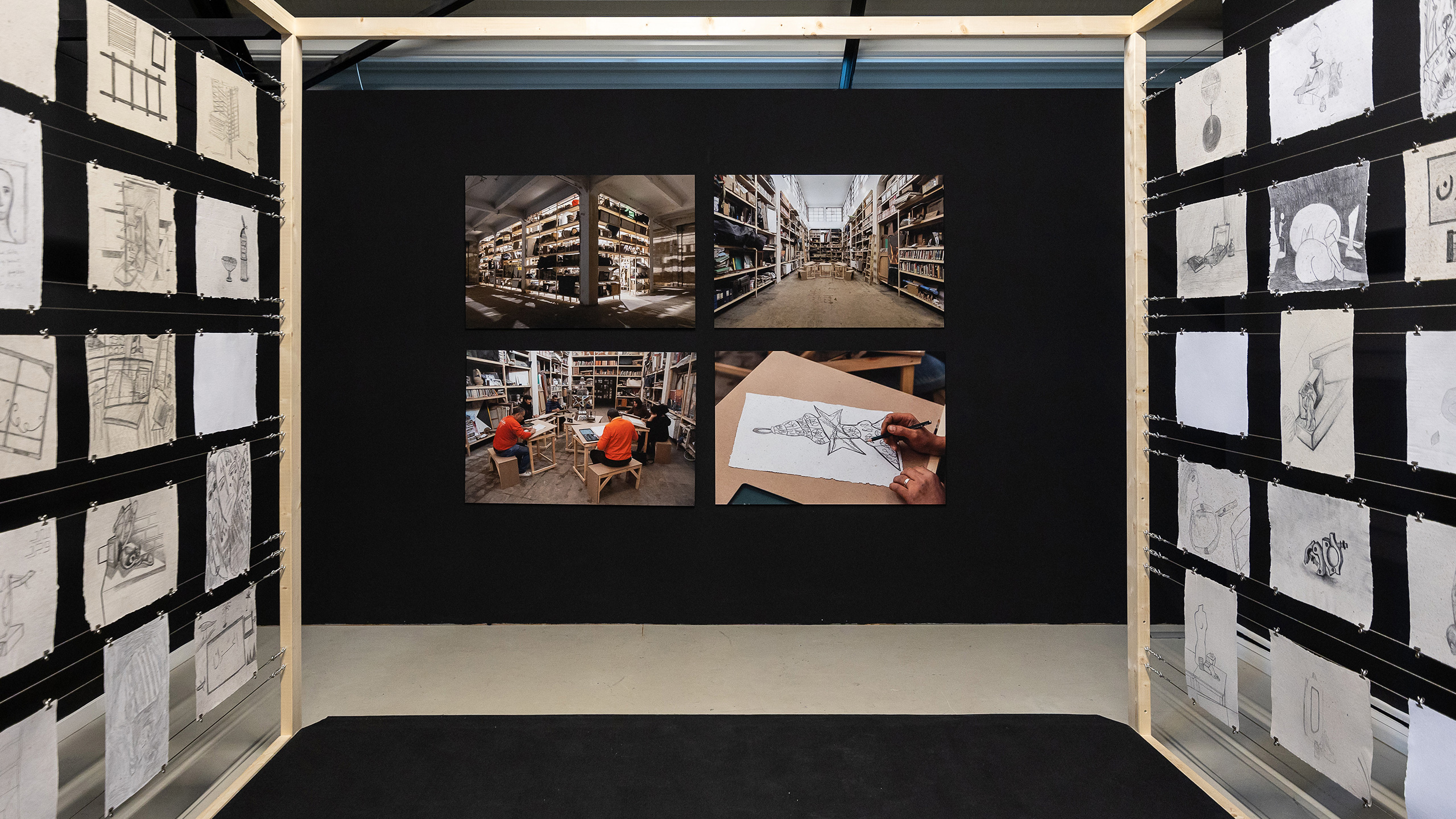 The exhibition at Framer Framed in Amsterdam showed the results of the project that took place in Cairo. The project is a response to the closure of the Townhouse Gallery of Contemporary Art. The closing is an incentive to investigate a series of events in the centre of Cairo and the cultural scene in Egypt. In early 2020, a series of drawing sessions took place in the former factory space of the Townhouse Gallery in Cairo. A group of artists came together to draw and archive remaining objects from the Townhouse Gallery, which was threatened with closing down, and thus to reflect on the complex situation in which the Townhouse had ended up.
